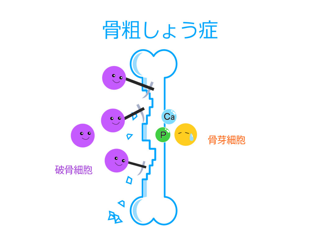 2026.1.29 Thu. 【医師監修】骨粗鬆症の原因と治療方法|重症化を防ぐための戦略 骨粗鬆症 目次1 骨粗鬆症とは1.1 骨粗鬆症とは何か1.2 骨密度とその重要性1.3 骨粗鬆症の種類とリスク因子2 骨粗鬆症の診断方法と検査2.1 骨密度検査の仕組み2.2 血液検査で分かること2.3 診断基準と重症度評価3 骨粗鬆症の効果的な治療法3.1 医薬品治療の種類と効果3.2 運動療法と食事療法の重要性4 まとめ5 参考文献 骨粗鬆症とは 骨粗鬆症とは何か 骨粗鬆症とは、骨の量が減り、骨の質が低下することで、骨がもろくなり、骨折しやすくなる病気です。骨は常に古い骨が壊され(骨吸収)、新しい骨が作られる(骨形成)という代謝を繰り返しています。若い頃は骨形成が盛んで、骨吸収を上回っているため、骨量は増加します。しかし、30代をピークに骨量は徐々に減少し始め、高齢になると骨吸収が骨形成を上回るようになり、骨量が減少して骨粗鬆症のリスクが高まります。 骨密度とその重要性 骨密度とは、骨の強さを測る指標です。骨密度が高いほど骨は強く、骨折しにくい状態です。骨密度は、20~40歳代でピークに達し、その後は徐々に低下していきます。特に女性は閉経後、女性ホルモンであるエストロゲンの分泌が急激に減少することで、骨密度が大きく低下しやすいため注意が必要です。骨密度検査を受けることで、現在の骨の状態を客観的に評価し、骨粗鬆症の診断や骨折リスクの予測に役立ちます。 骨粗鬆症の種類とリスク因子 骨粗鬆症は大きく分けて、原因の明らかな続発性骨粗鬆症と原因の特定できない原発性骨粗鬆症の2種類に分類されます。原発性骨粗鬆症は、加齢や閉経に伴うホルモン変化、遺伝的要因などが複雑に絡み合って発症すると考えられています。一方、続発性骨粗鬆症は、ステロイド薬の長期使用や特定の疾患(例えば、関節リウマチ、甲状腺機能亢進症など)が原因で起こります。 骨粗鬆症の診断方法と検査 骨密度検査の仕組み 骨密度検査は、骨の強さを測る検査です。骨密度は、骨の単位体積あたりのカルシウムなどのミネラルの量を表します。この検査によって、骨粗鬆症の診断だけでなく、骨折リスクの予測にも役立ちます。 骨密度検査には、主に2つの方法があります。 DXA法(二重エネルギーX線吸収測定法): 腰椎(腰の骨)や大腿骨(太ももの骨)の骨密度を測定する方法です。整形外科で広く普及しており、精度の高い検査として知られています。痛みを伴わず、検査時間も5分程度と短いです。 超音波法: かかとなどの骨に超音波を当てて、骨密度を測定する方法です。DXA法に比べて簡便です。簡易的な検査として用いられることが多いです。 当院では、より正確な診断のためにDXA法を用いています。骨密度検査の結果は、若年成人の平均骨密度と比較した値(YAM)で評価されます。 血液検査で分かること 血液検査では、骨代謝の状態を調べることができます。骨は常に古い骨が壊され(骨吸収)、新しい骨が作られる(骨形成)という新陳代謝を繰り返しており、このバランスが崩れると骨粗鬆症のリスクが高まります。血液検査では、この骨代謝に関わる物質の量を測定します。 これらの検査値を総合的に判断することで、骨代謝のバランス、骨粗鬆症のリスク、治療効果などを評価します。 診断基準と重症度評価 骨粗鬆症の診断は、主に骨密度検査の結果に基づいて行います。世界保健機関(WHO)の基準では、若年成人の平均骨密度と比較した値(YAM)を用いて、以下の3段階に分類されます。 正常: YAM が -1.0SD 以上。同年代の平均値と比較して骨密度が同等かそれ以上である状態です。 骨量減少(骨粗鬆症予備軍): YAM が -1.0SD 以上 -2.5SD 未満。骨密度が低下し始めており、骨粗鬆症に移行するリスクが高い状態です。適切な予防策が必要です。 骨粗鬆症: YAM が -2.5SD 以下。骨密度が著しく低下しており、骨折のリスクが非常に高い状態です。積極的な治療が必要です。 また、骨折の既往がある場合は、骨密度にかかわらず骨粗鬆症と診断されることもあります。高齢者の骨粗鬆症は、医療費の高騰、身体障害、生活の質の低下、死亡率の増加と関連しています。特に股関節骨折は、寝たきりになるリスクを高めるため注意が必要です。 当院では、患者さんの状態に合わせて適切な検査を行い、丁寧にご説明いたしますので、お気軽にご相談ください。 骨粗鬆症の効果的な治療法 骨粗鬆症と診断されたら、どのように治療を進めていけば良いのか、多くの患者さんが不安を抱かれることでしょう。整形外科医として、患者さんの不安を少しでも解消し、治療に前向きに取り組めるよう、骨粗鬆症の治療法について、薬物療法、運動療法、食事療法、そして費用面を分かりやすく解説します。 医薬品治療の種類と効果 骨粗鬆症の治療薬はいくつか種類があり、骨を壊す作用を弱めるもの、骨を作る作用を強めるものなど、作用機序が異なります。それぞれ効果や特徴、そして副作用も異なるため、患者さんの状態に最適な薬を