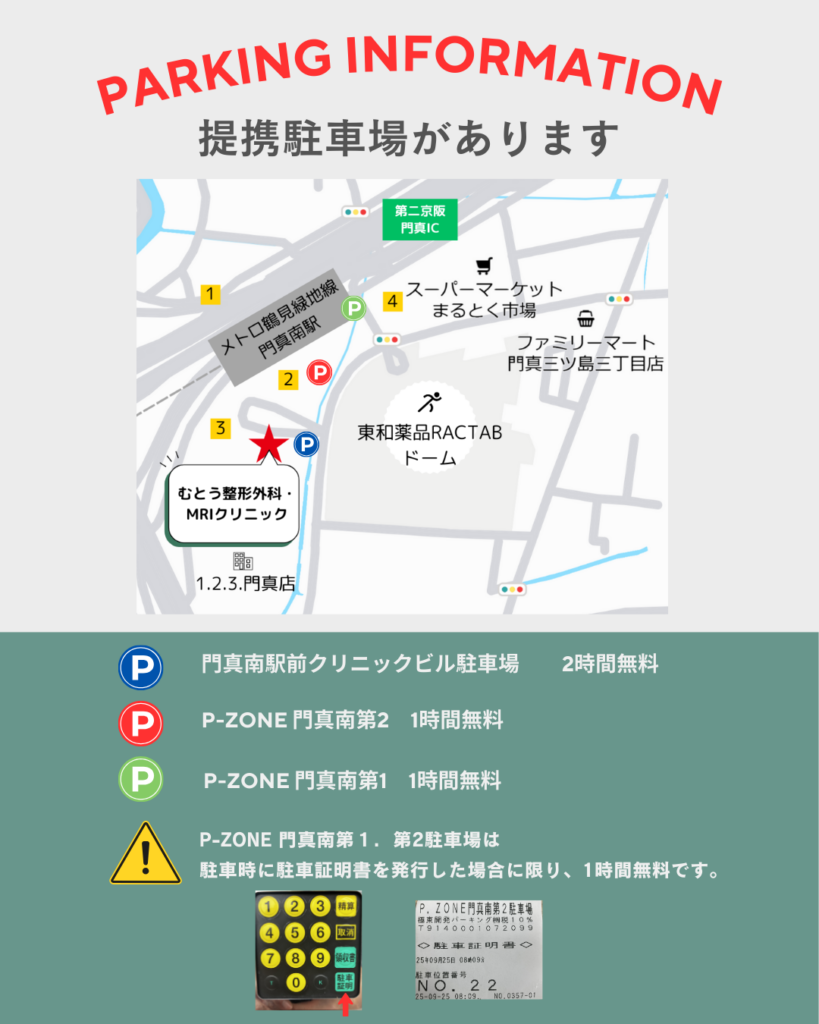 はい、ございます。また、当院の無料駐車場が満車の場合でも、ご安心ください。近隣に提携駐車場をご用意しております。